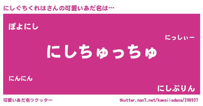 | ヘコむあだ名 | 『にしを』『にしにゅー』『豆乳』 |