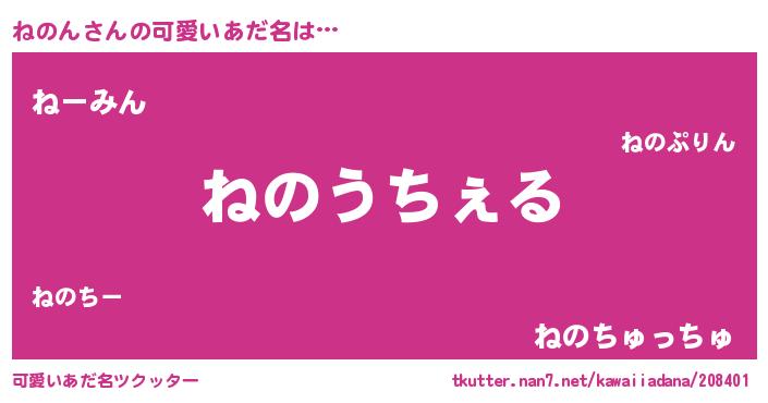 | 男性向けラノベタイトル風あだ名 | 『Re:ねのんから始める異世界生活』 |