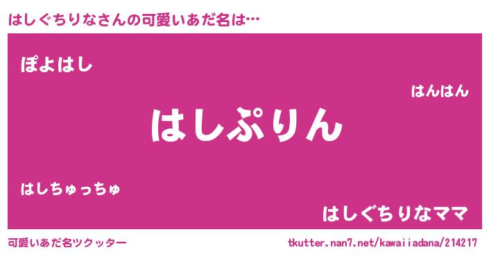 | 恥ずかしいあだ名 | 『はしちん』『プリティーはしぐちりな』 |