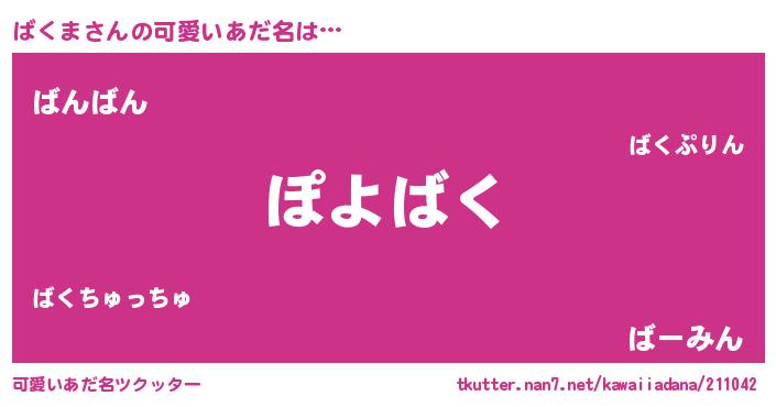| 意味不明あだ名 | 『住所不定無職ばくま(84歳)』『自称ばくま』 |
