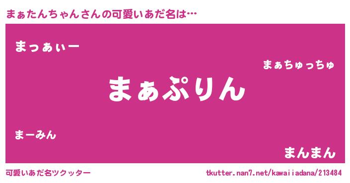 | 胡散臭い通販商品みたいなあだ名 | 『信頼と実績のサプリメント…その名も「まぁたんちゃん」』 |