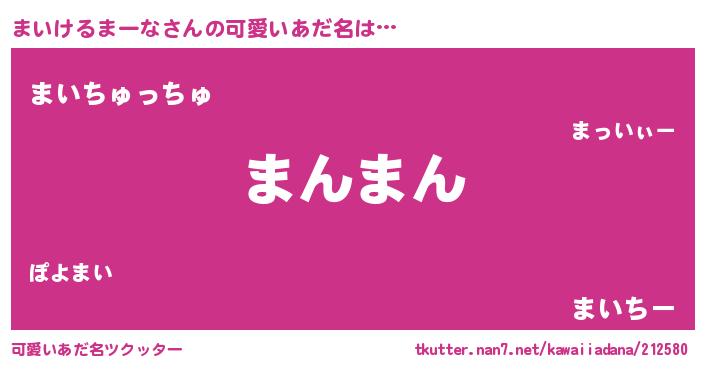 | 恥ずかしいあだ名 | 『プリティーまいけるまーな』『まいちん』 |