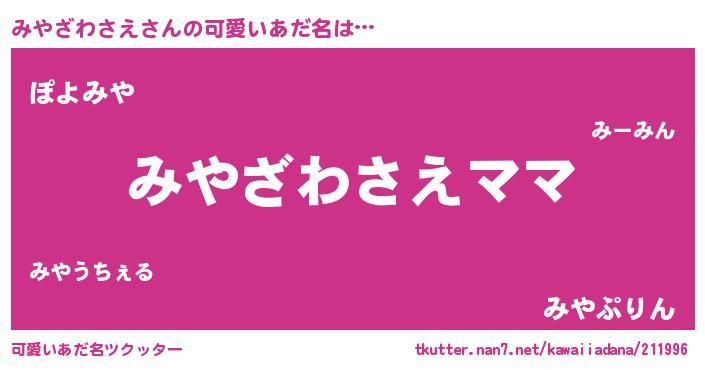| ヘコむあだ名 | 『みやざわさえ(遠い目)』『みや太郎』 |