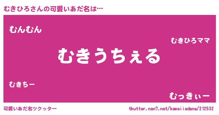 | 男性向けラノベタイトル風あだ名 | 『Re:むきひろから始める異世界生活』 |