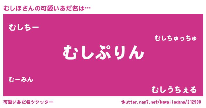 | 意味不明あだ名 | 『めかぶ科むしほ属』『自称むしほ』 |
