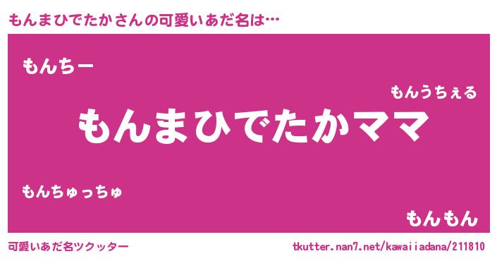 | 女子向けラノベタイトル風あだ名 | 『もんまひでたかの契約王妃』 |