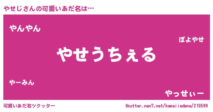 | 意味不明あだ名 | 『自称やせじ』『ペロリンやせじ』 |
