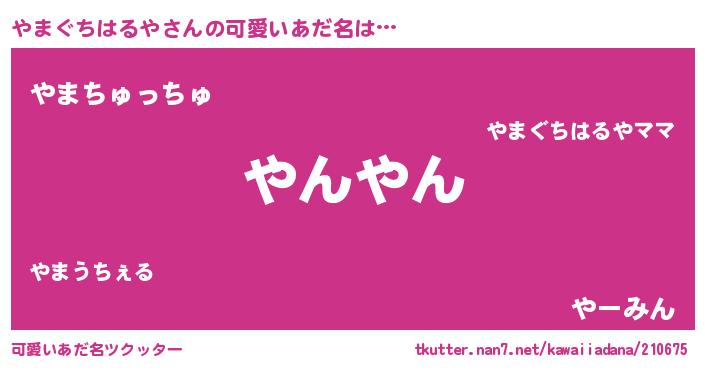 | 恥ずかしいあだ名 | 『プリティーやまぐちはるや』『やまちん』 |