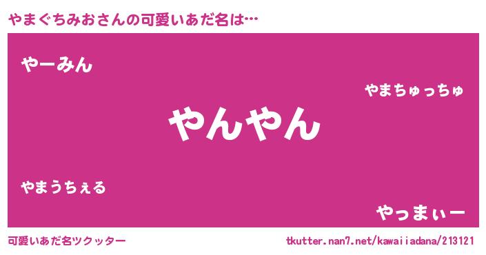| 恥ずかしいあだ名 | 『プリティーやまぐちみお』『やまちん』 |