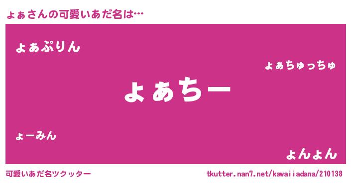 | 女子向けラノベタイトル風あだ名 | 『ょぁの雑貨屋さん』『ょぁ恋絵巻』 |