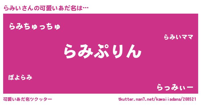 | 男性向けラノベタイトル風あだ名 | 『らみい~年齢イコール彼女いない歴の魔法使い~』 |