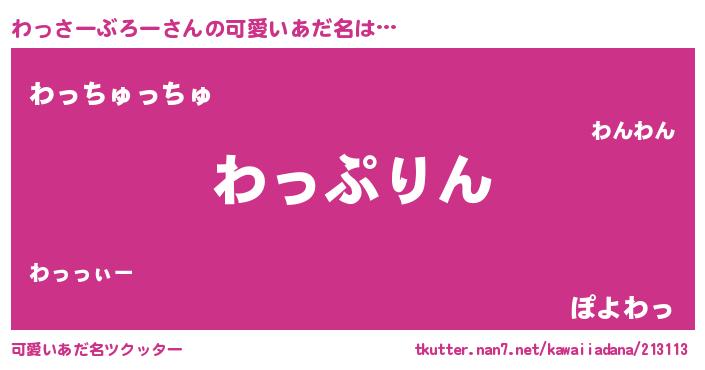 | 男性向けラノベタイトル風あだ名 | 『わっさーぶろー~年齢イコール彼女いない歴の魔法使い~』 |