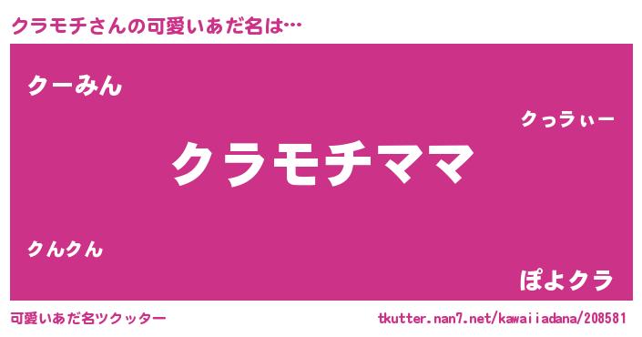 | 意味不明あだ名 | 『永久保存クラモチ』『ペロリンクラモチ』 |