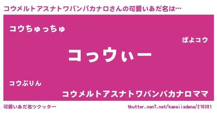 | 意味不明あだ名 | 『とにかく怪しいコウメルトアスナトワバンバカナロ』 |