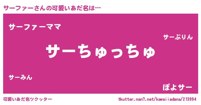 | 女子向けラノベタイトル風あだ名 | 『サーファー夫妻のなれそめ』 |