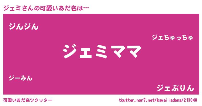| ヘコむあだ名 | 『ジェミ(遠い目)』『ジェにゅー』 |