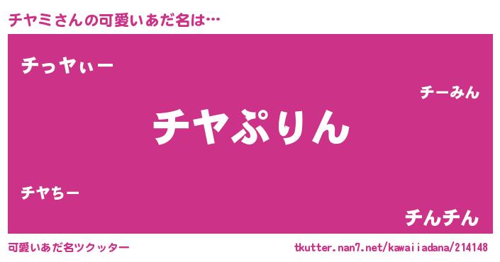 | 意味不明あだ名 | 『めかぶ科チヤミ属』『ペロリンチヤミ』 |