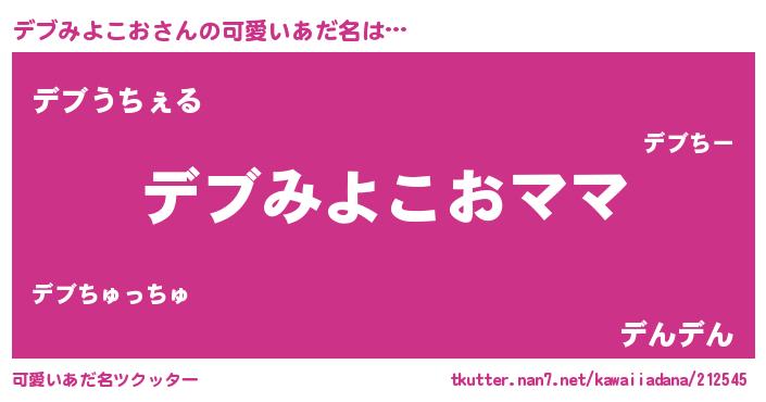 | ヘコむあだ名 | 『デブみよこお(笑)』『デブっふぃ~』 |