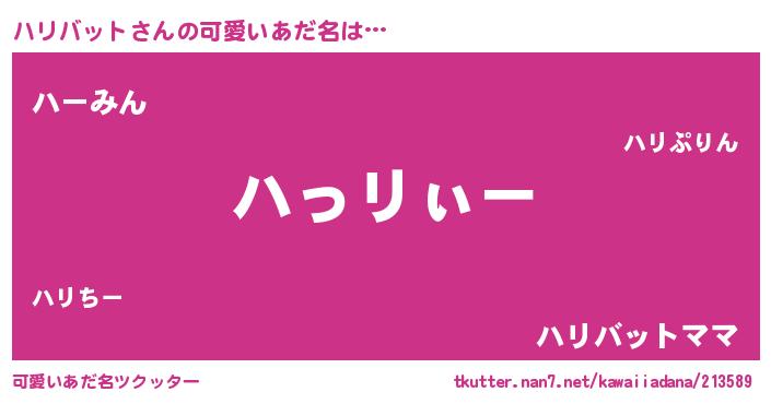 | 男性向けラノベタイトル風あだ名 | 『ハリバットの嫁は女の子じゃないと思った?』 |