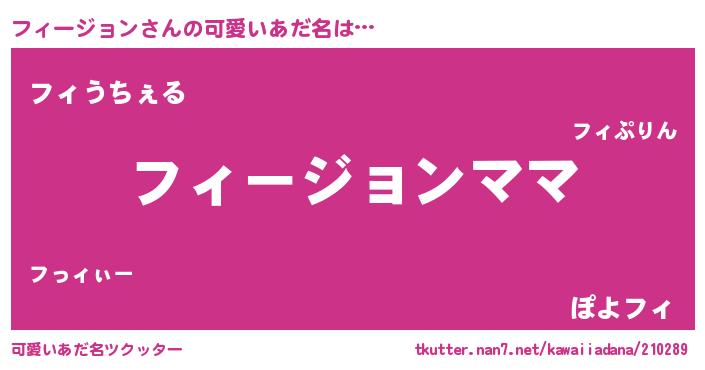 | ヘコむあだ名 | 『フィージョン(笑)』『フィぷりん』 |