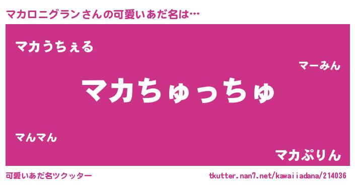 | ヘコむあだ名 | 『マカにー』『マカロニグラン(笑)』 |