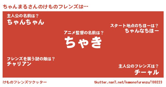 | 意味不明あだ名 | 『とにかく怪しいちゃんまる』 |