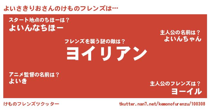 | 男性向けラノベタイトル風あだ名 | 『よいさきりおに滅ぼされるだけの簡単なお仕事です』 |