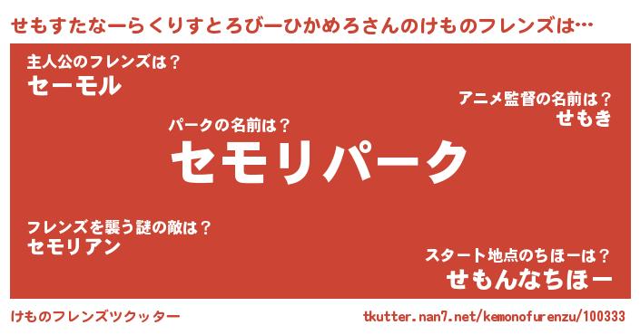 | 料理風あだ名 | 『せもすたなーらくりすとろびーひかめろごはん』 |