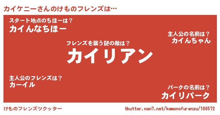 | 男性向けラノベタイトル風あだ名 | 『カイケニーに滅ぼされるだけの簡単なお仕事です』 |