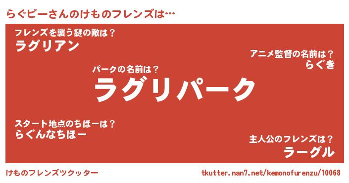 | 意味不明あだ名 | 『もやし科らぐピー属』『自称らぐピー』 |