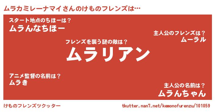 | 肩書あだ名 | 『ムラカミレーナマイ助手』 |