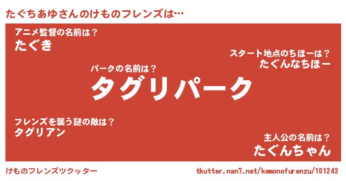 | 市区町村名 | 『たぐ田谷区』『名古たぐ市』 |