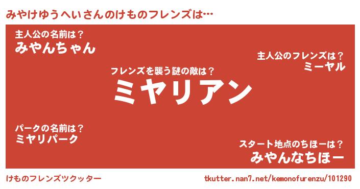 | ヘコむあだ名 | 『みやっふぃ~』『豆乳』『みやっぺ』 |