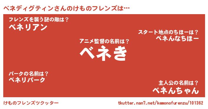| ポケモン風あだ名 | 『ベーネイ』『ヒベネディグティン』 |