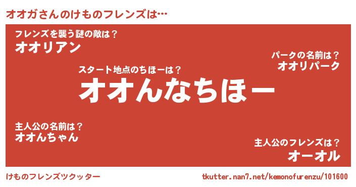 | 2回繰り返すあだ名 | 『オオオオ』『ぽろぽろ』『ごそごそ』 |