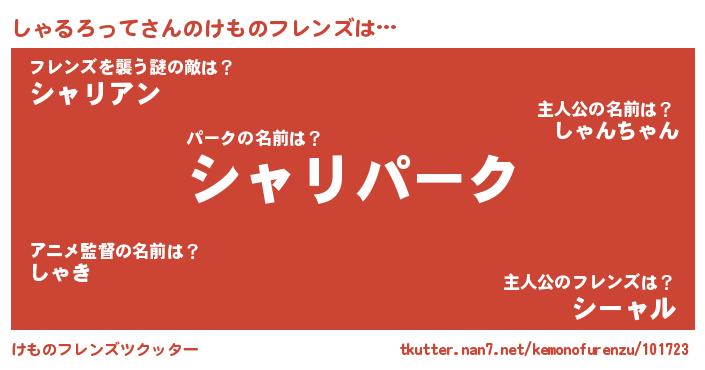 | 意味不明あだ名 | 『自称しゃるろって』 |