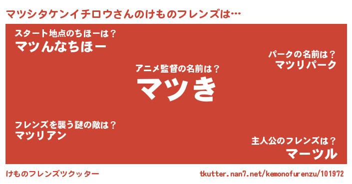 | 男性向けラノベタイトル風あだ名 | 『マツシタケンイチロウの嫁は女の子じゃないと思った?』 |