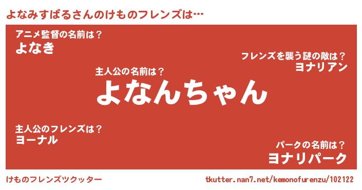 | ヘコむあだ名 | 『よなにー』『よなっ子』『つくし』 |