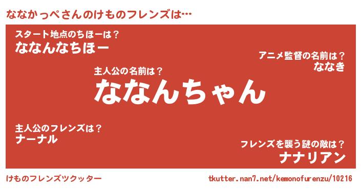 | ヒーロー風カッコイイあだ名 | 『スーパーナナカッペ』『仮面ナナダー』 |