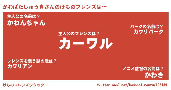 | 男性向けラノベタイトル風あだ名 | 『かわばたしゅうきという概念が存在しない退屈な世界 』 |