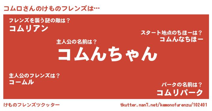 | ファンタジー風あだ名 | 『カークコムラー』『コムフェル』 |