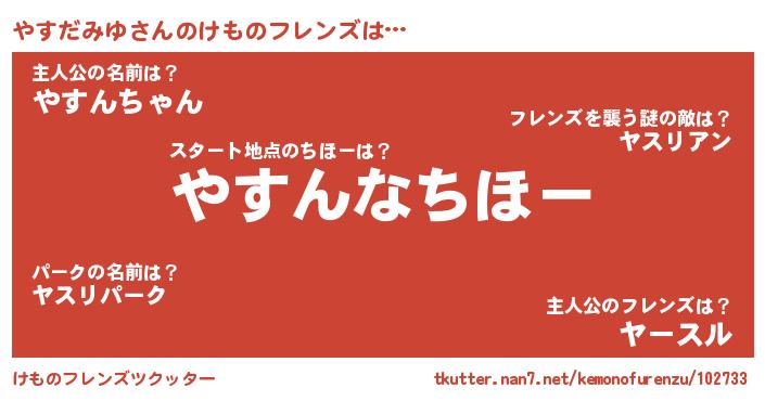 | 肩書あだ名 | 『やすだみゆ上級大将』『やすだみゆ教官』 |