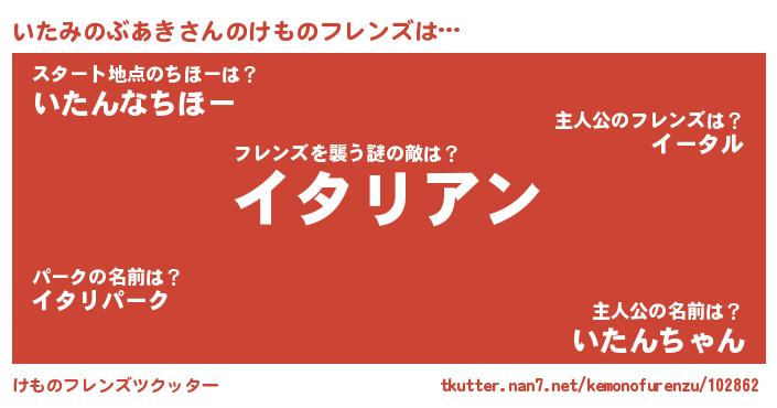 | ポケモン風あだ名 | 『イタキング』『イタゴンZ』 |