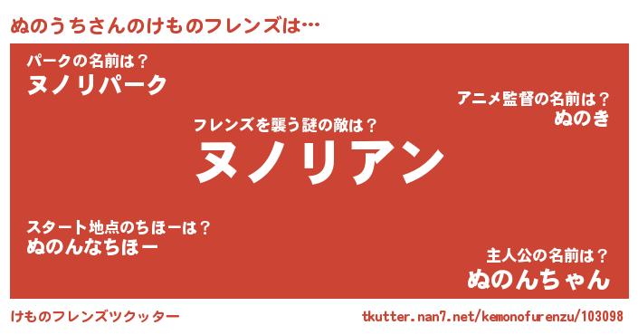 | ヒーロー風カッコイイあだ名 | 『慈愛の使者ぬのうち』『天弓騎士ヌノ』 |