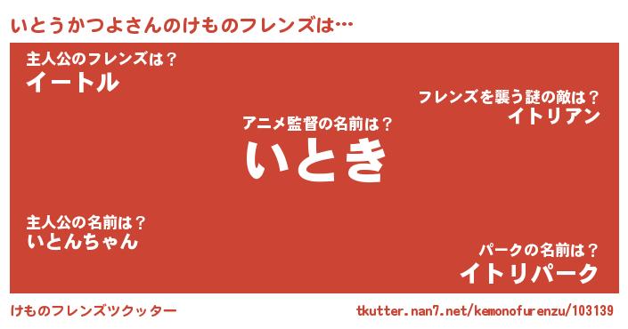 | ポケモン風あだ名 | 『ヒイトウカツヨ』『ゼニイト』 |