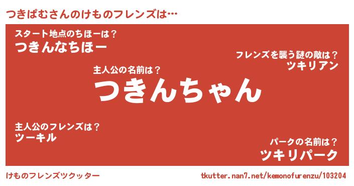 | 男性向けラノベタイトル風あだ名 | 『つきぱむの憂鬱』『魔弾の王とつきぱむ』 |