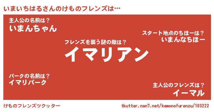 | ヘコむあだ名 | 『いまっふぃ~』『いまいちはる(笑)』 |