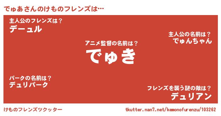 | 男性向けラノベタイトル風あだ名 | 『でゅあに滅ぼされるだけの簡単なお仕事です』 |