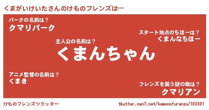 | 2回繰り返すあだ名 | 『くまくま』『もふもふ』『れんれん』 |