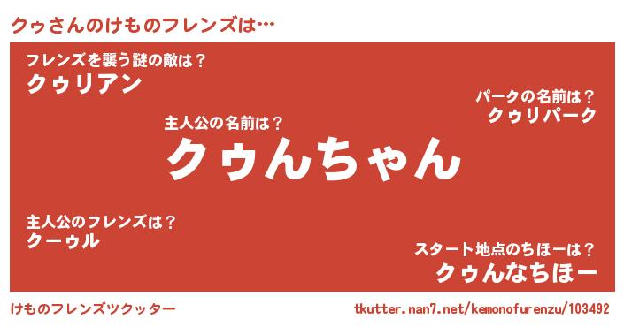| ヒーロー風カッコイイあだ名 | 『スーパークゥ』『正義の使者クゥ』 |